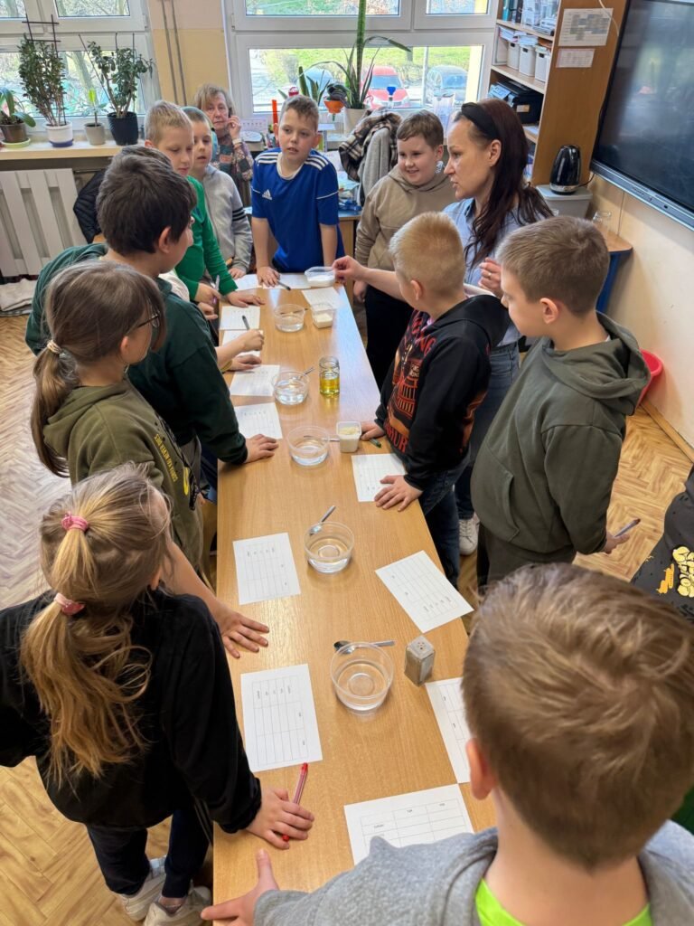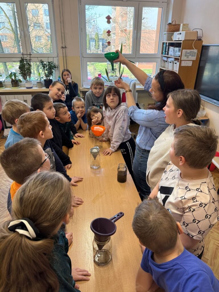 Z okazji Dnia Wody uczniowie klas 1–3 wzięli udział w wyjątkowych zajęciach pełnych ciekawych doświadczeń i odkryć! Rozmawialiśmy o tym, jak ważna jest woda w naszym codziennym życiu i do czego jej potrzebujemy. Dzieci bardzo aktywnie dzieliły się swoimi pomysłami i spostrzeżeniami. Najwięcej emocji wzbudziły eksperymenty! Uczniowie mieli okazję samodzielnie obserwować różne właściwości wody, poznali jej trzy stany skupienia – stały, ciekły i gazowy – oraz dowiedzieli się, jak można filtrować brudną wodę.