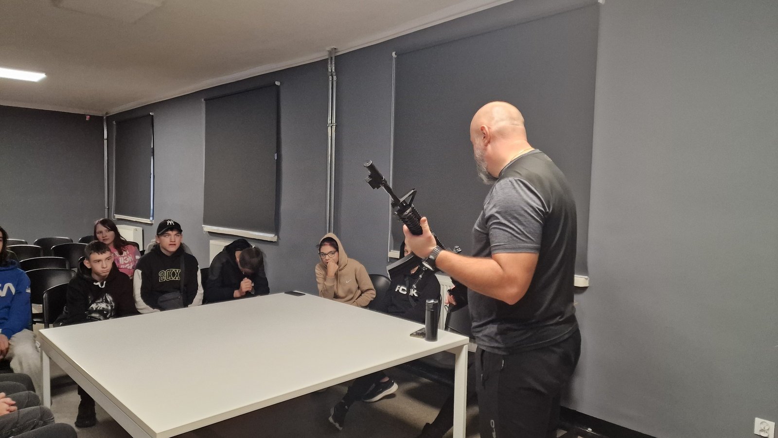 Lekcja wychowania fizycznego na strzelnicy wirtualnej