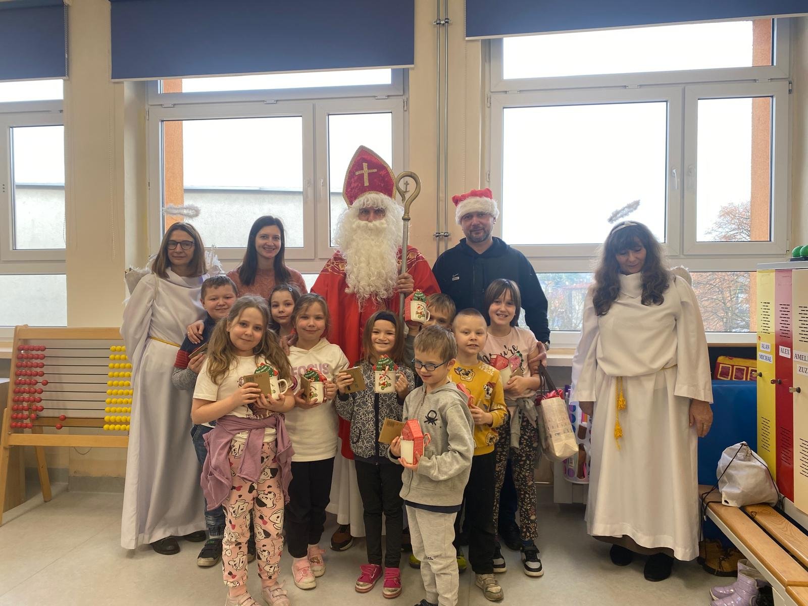 W naszej szkole zapanowała wyjątkowa, świąteczna atmosfera podczas Mikołajek. Już od samego rana uczniów odwiedził Święty Mikołaj, który obdarzał wszystkich uśmiechem, życzliwością oraz oczywiście prezentami. Dzieci powitały go w pełni świątecznego ducha, a spotkanie stało się okazją do rozmów, dzielenia się życzeniami oraz przypomnienia o wartości dobra, pomagania i wzajemnej życzliwości. Nie zabrakło radości, śmiechu oraz wspólnych zdjęć, które uwieczniły te wyjątkowe chwile. Był to dzień pełen ciepła i pozytywnej energii, który na długo pozostanie w pamięci uczniów. Serdecznie dziękujemy Świętemu Mikołajowi za odwiedziny i za to, że potrafi wywołać uśmiech na twarzach dzieci.