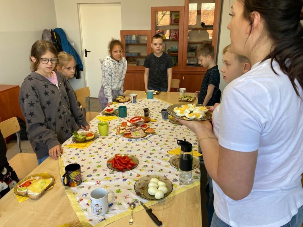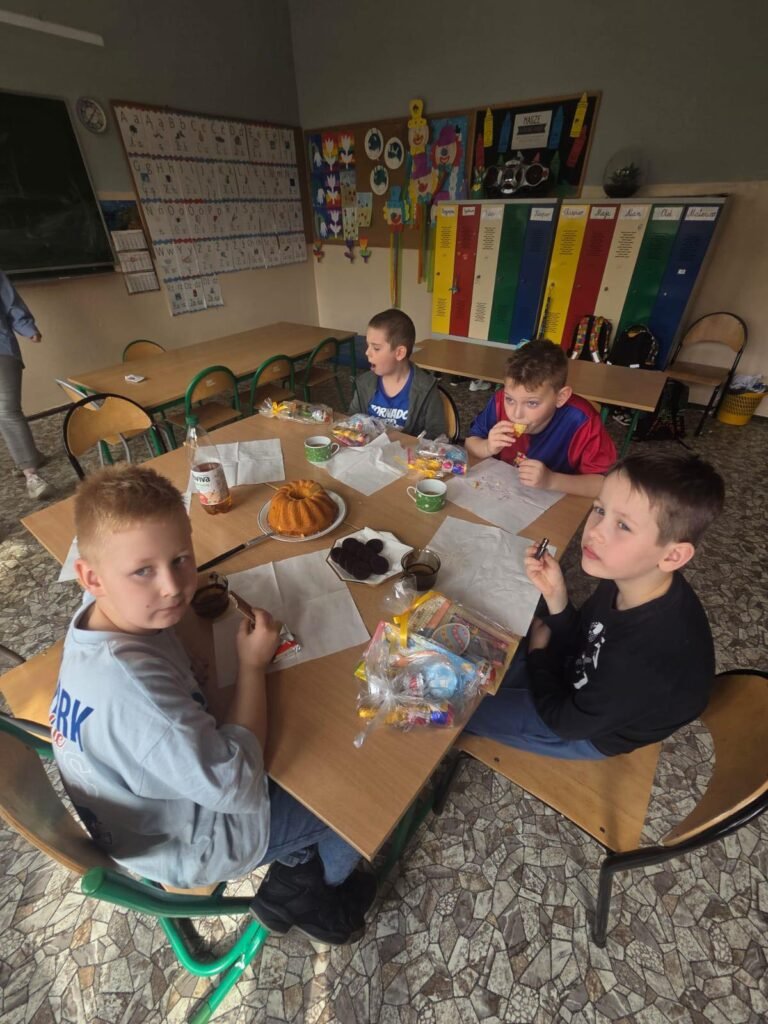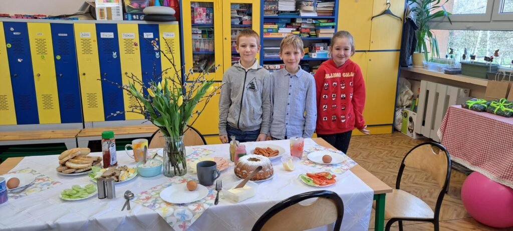 Dzisiejszy dzień w naszej szkole upłynął w wyjątkowo świątecznej atmosferze. Uczniowie poszczególnych klas wspólnie przygotowali wielkanocne śniadanie, które stało się nie tylko okazją do spożycia posiłku przy wspólnym stole, lecz także wartościową lekcją tradycji i budowania relacji. Dzieci z dużym zaangażowaniem uczestniczyły w przygotowaniach – nakrywały stoły, dzieliły się potrawami oraz wspólnie zasiadły do świątecznego stołu. Był to szczególny moment sprzyjający integracji, wzmacnianiu poczucia wspólnoty oraz kształtowaniu postaw opartych na wzajemnym szacunku i życzliwości. Podczas spotkania uczniowie mieli również okazję poznawać i pielęgnować tradycje wielkanocne, zgłębiając zwyczaje oraz symbolikę związaną z tym wyjątkowym okresem w roku. Wspólne śniadanie stało się piękną okazją do radosnego przeżywania nadchodzących Świąt Wielkanocnych oraz umacniania szkolnej wspólnoty poprzez kultywowanie tradycji.
